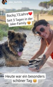 Rocky wird in Liebe gehen, so wie er es jetzt erlebt und genießt. Er wird nicht mit dem Gefühl gehen abgeschoben worden zu sein. Rocky kannte kein Hundekissen, keine streichelnden Hände, alles war neu für ihn. Aber er kannte einen Ball zum spielen … das hat uns ein wenig Hoffnung gegeben das er in den letzten Jahren vielleicht ein wenig Freude empfinden konnte.