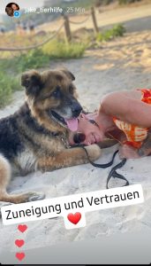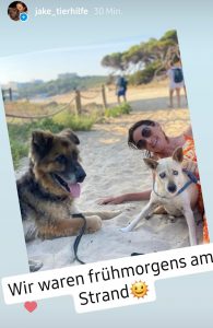 Ich bin gemeinsam mit Maya sehr traurig und verbringen zusammen viel Zeit mit schönen Momenten. Kuscheln, spazieren am Strand, besonders leckeres Fressi.